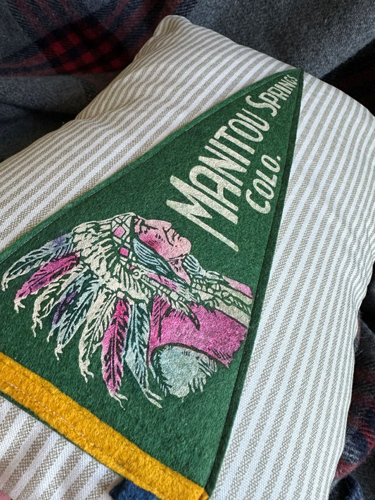 Colorado Manitou Springs Vintage Pennant on New Woven Fabric Throw Pillow
