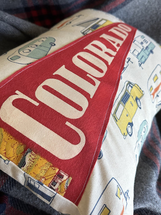 Colorado Red Vintage Pennant on New Woven Camper Fabric Throw Pillow