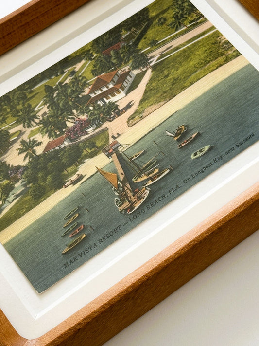 Florida Longboat Key Mar Vista Resort 1950's Framed Vintage Linen Postcard