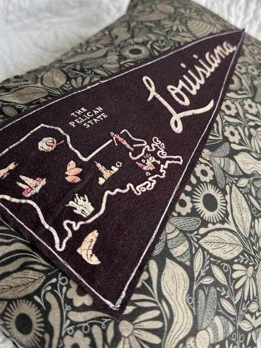Louisiana Vintage Pennant on New Woven Botanicals Throw Pillow