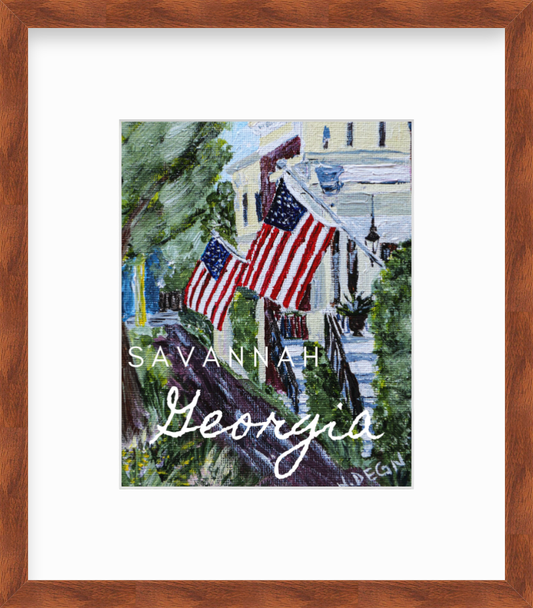 Georgia Savannah American Flags Giclee Art Print
