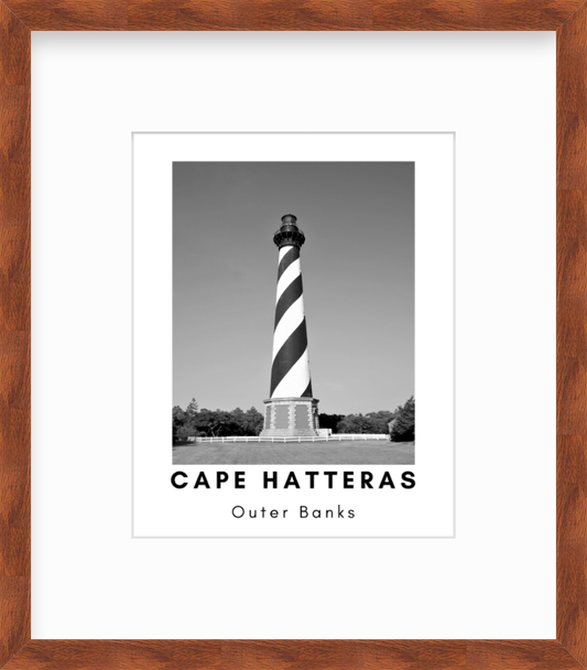 North Carolina Outer Banks Cape Hatteras Lighthouse Black and White Giclee Travel Print