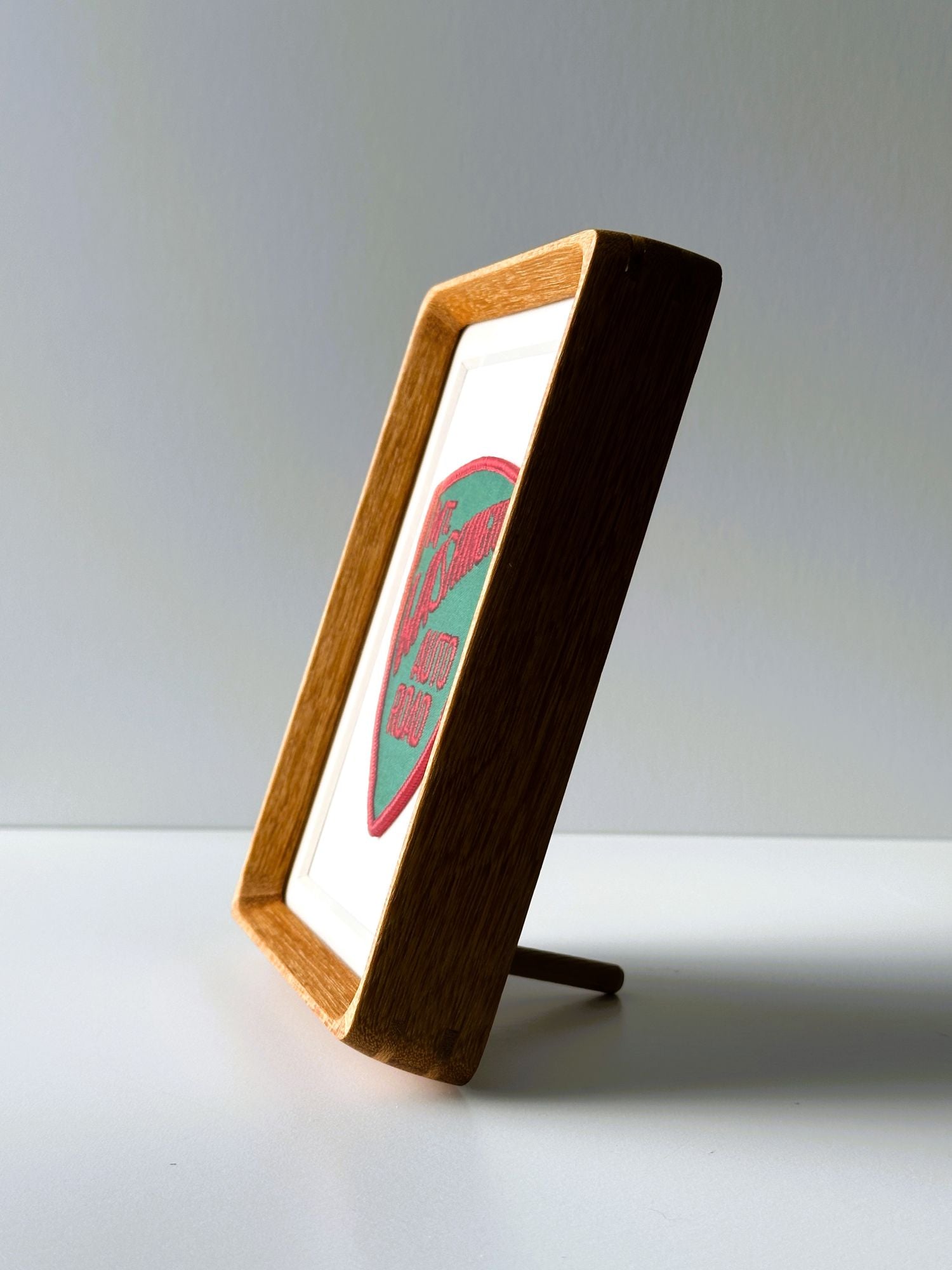 Natural Wood Solid Teak Frame. Acrylic plexiglass with 5x7 opening. Overall Size 5.6 inches x 7.6 inches square. 1.2 inches thick. Tabletop or wall mount.